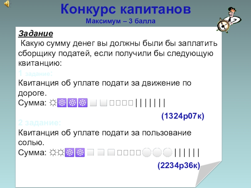 Какую сумму денег вы должны были бы заплатить сборщику податей, если получили бы следующую квитанцию: