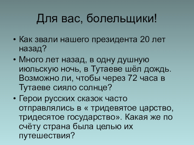 Это сайт презентаций, где можно хранить и обмениваться своими презентациями, докладами, проектами, шаблонами в формате PowerPoint с другими пользователями. Мы помогаем школьникам, студентам, учителям, преподавателям хранить и обмениваться учебными материалами.