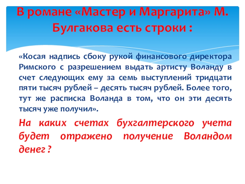 В романе «Мастер и Маргарита» М.Булгакова есть строки :