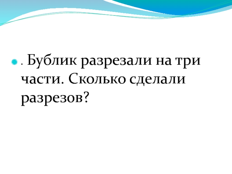 Слайд 7. Бублик разрезали на три части. Сколько сделали разрезов?