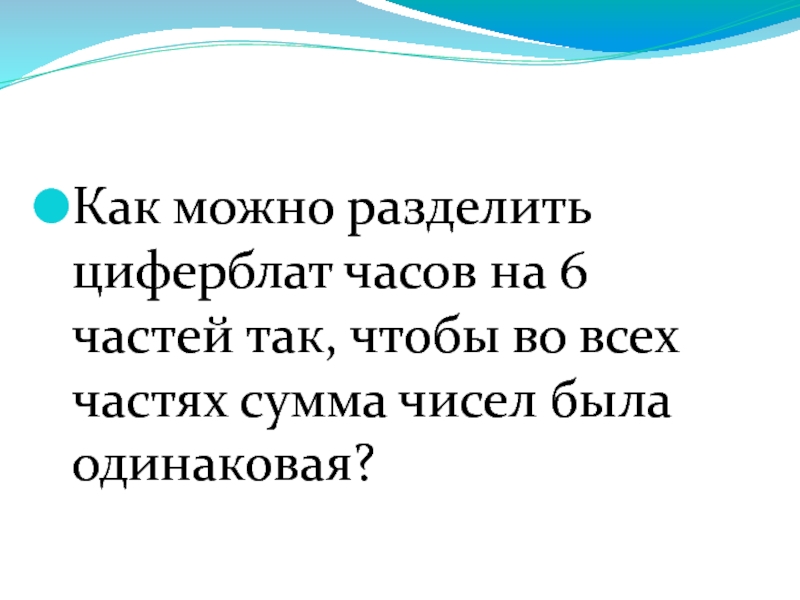 Как можно разделить циферблат часов на 6 частей так, чтобы во всех