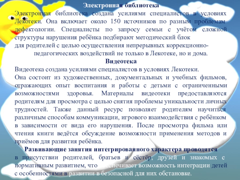 Электронная библиотека создана усилиями специалистов в условиях Лекотеки. Она