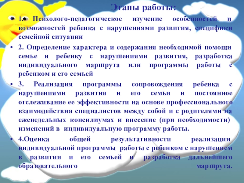 2. Определение характера и содержания необходимой помощи семье и ребенку с нарушениями развития, разработка индивидуального маршрута или программы работы с ребенком и его семьей
