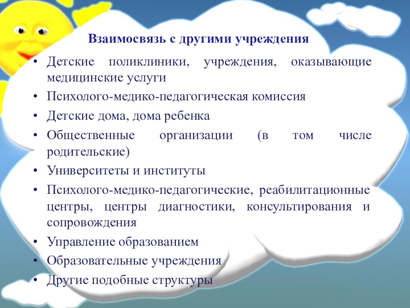 Взаимосвязь с другими учреждения по вопросам медико-психолого-педагогического сопровождения