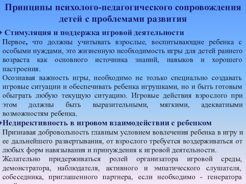 Дети данной категории нуждаются в особом индивидуально-ориентированном подходе, включающем поддержку их личностного развития, формирование психологических предпосылок учебной деятельности, оптимизацию родительско-детского взаимодействия, создание развивающей среды.