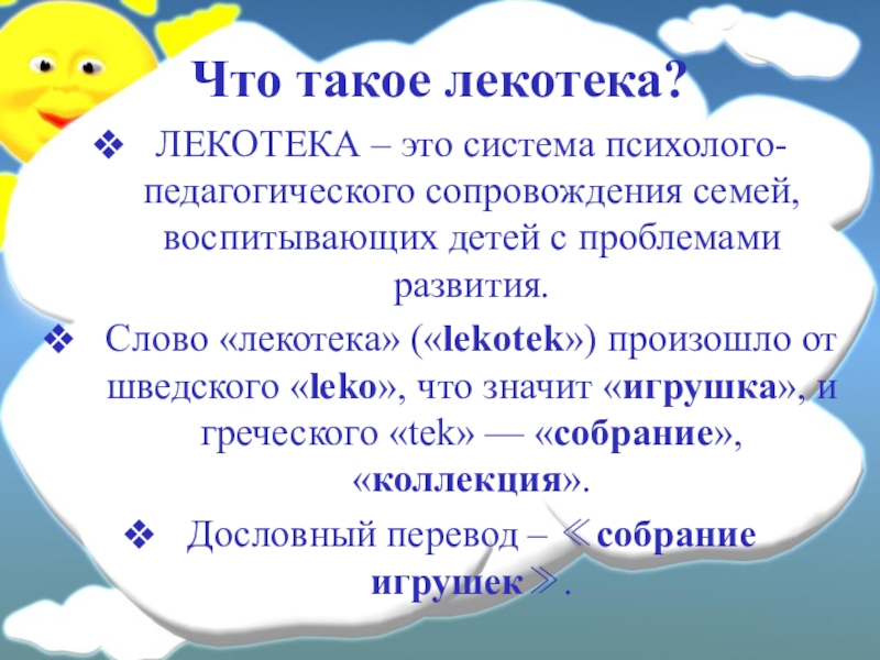 ЛЕКОТЕКА – это система психолого-педагогического сопровождения семей, воспитывающих детей