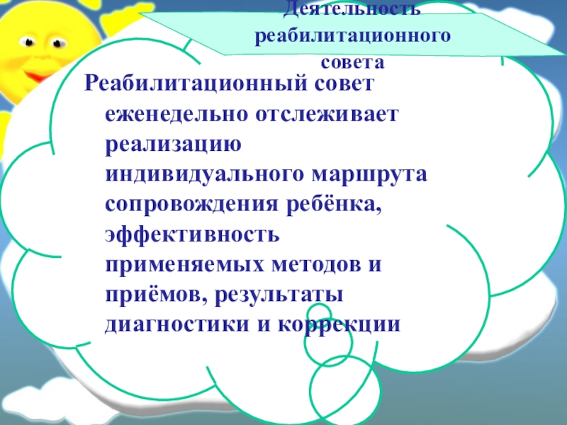 Слайд 39Реабилитационный совет еженедельно отслеживает реализацию индивидуального маршрута сопровождения ребёнка, эффективность применяемых