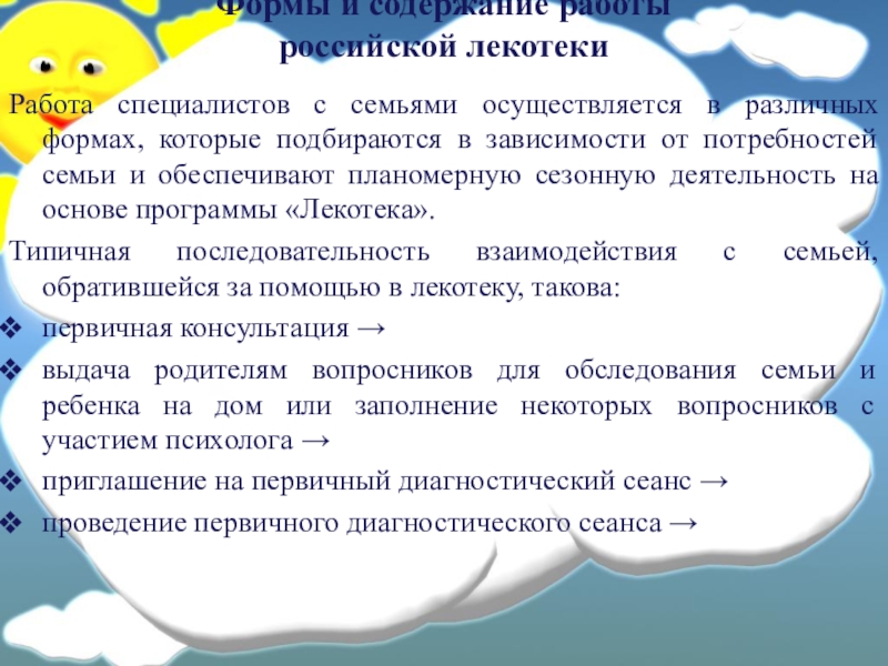 Типичная последовательность взаимодействия с семьей, обратившейся за помощью в лекотеку, такова: