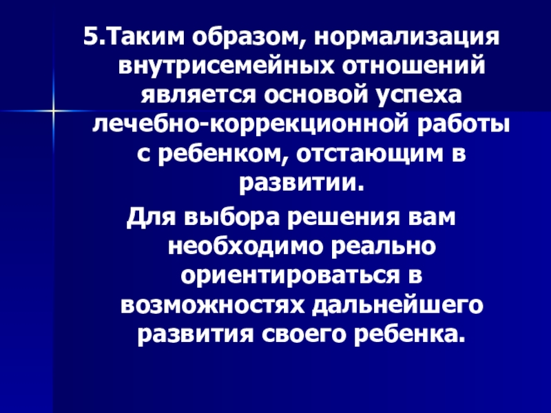 5.Таким образом, нормализация внутрисемейных отношений является основой успеха лечебно-коррекционной работы с