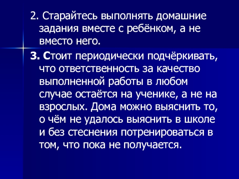 2. Старайтесь выполнять домашние задания вместе с ребёнком, а не вместо