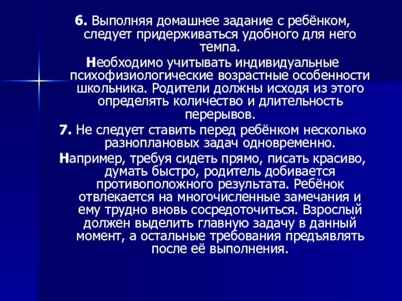 6. Выполняя домашнее задание с ребёнком, следует придерживаться удобного для него