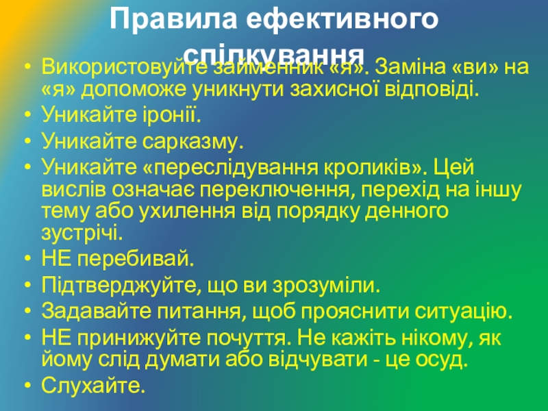 Слайд 11Правила ефективного спілкування