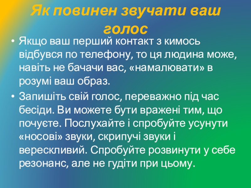 Слайд 5Як повинен звучати ваш голос