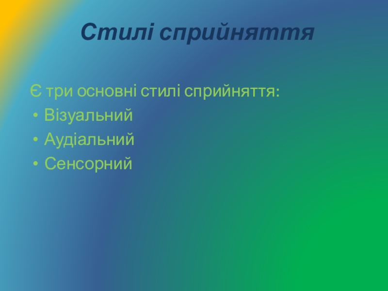 Слайд 9 Стилі сприйняття