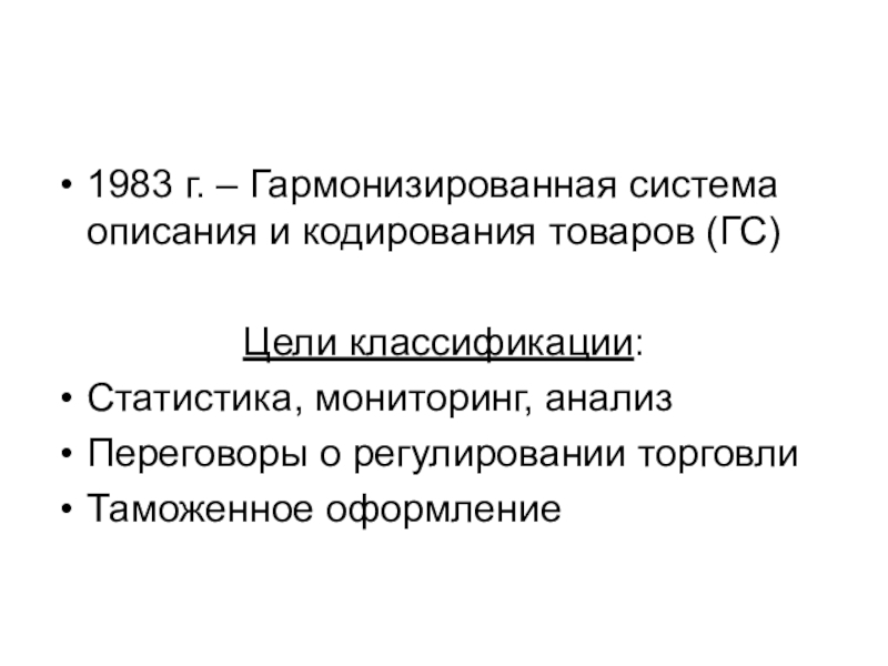 Слайд 481983 г. – Гармонизированная система описания и кодирования товаров (ГС)