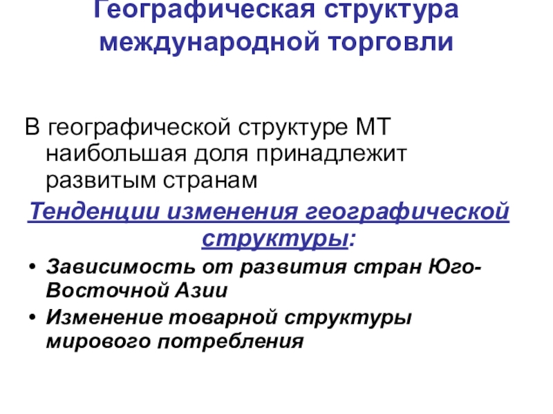 В географической структуре МТ наибольшая доля принадлежит развитым