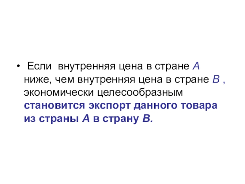 в стране В , экономически целесообразным становится экспорт данного товара из страны А в страну В.
