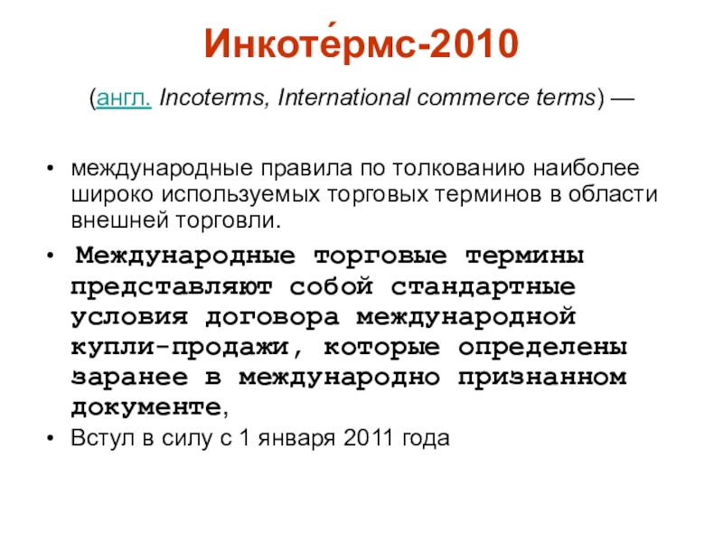 в международной торговле в условиях наличия рыночных отношений в момент продажи.