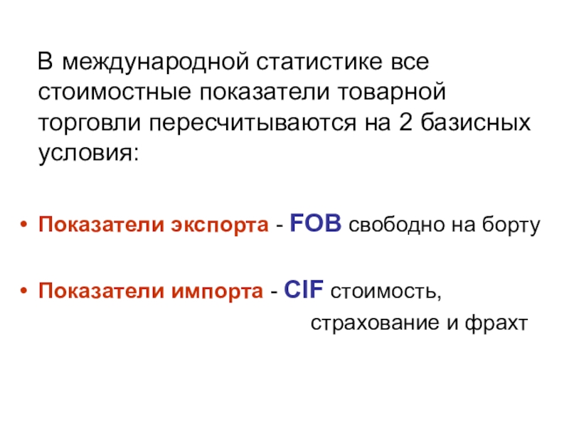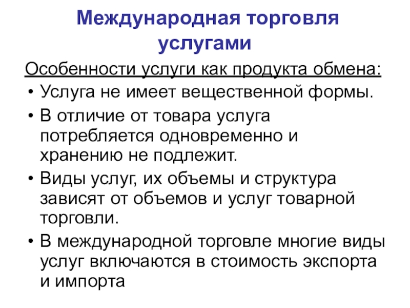 В международной торговле многие виды услуг включаются в стоимость экспорта и импорта