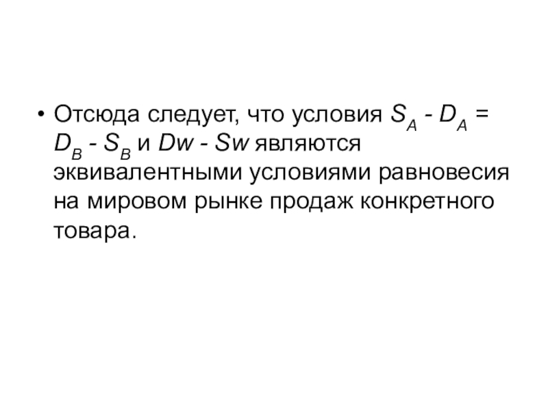 и Dw - Sw являются эквивалентными условиями равновесия на мировом рынке продаж конкретного товара.