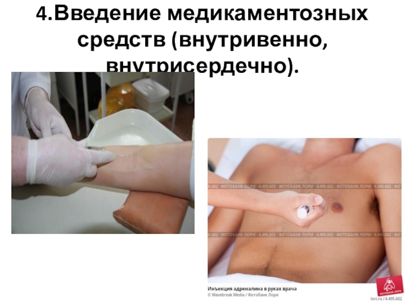4.Введение медикаментозных средств (внутривенно, внутрисердечно).