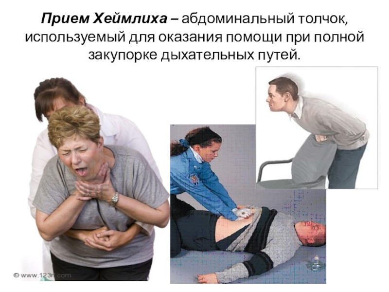 Слайд 23Прием Хеймлиха – абдоминальный толчок,