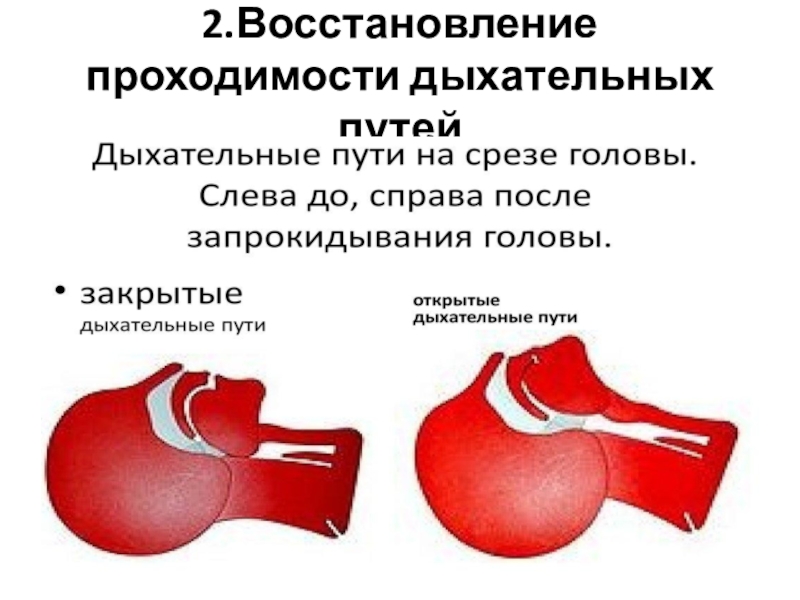 Слайд 19Обструкция дыхательных путей – полная или частичная непроходимость дыхательных путей.