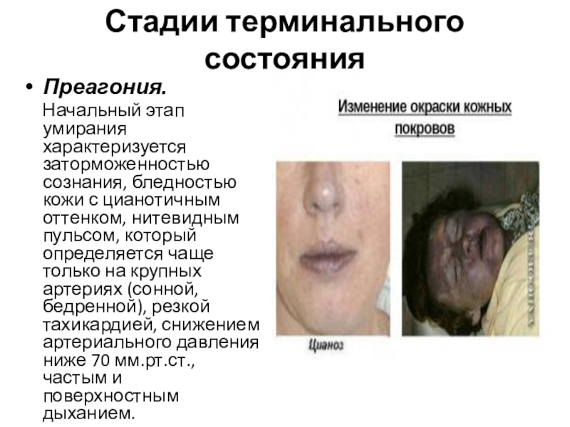 Слайд 4 Терминальным состоянием называется процесс умирания организма, пограничное состояние между