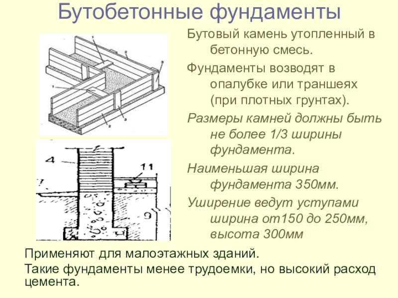 Устройство таких фундаментов требуют значительного расхода цемента.