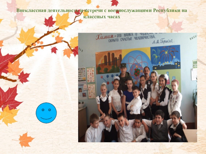 Слайд 19Внеклассная деятельность и встречи с военнослужащими Республики на классных часах
