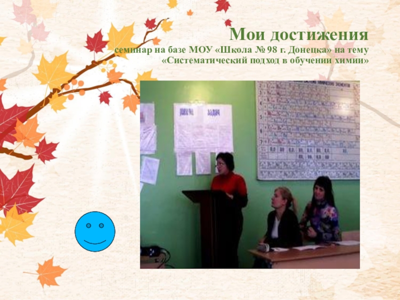 Мои достижения семинар на базе МОУ «Школа № 98 г. Донецка» на тему «Систематический подход в обучении
