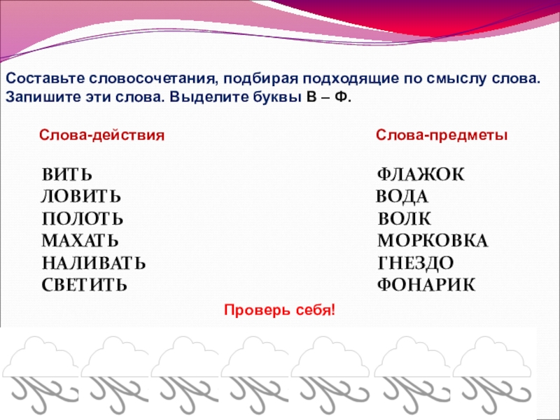 Вить гнездо, ловить волка, полоть морковку, махать флажком,