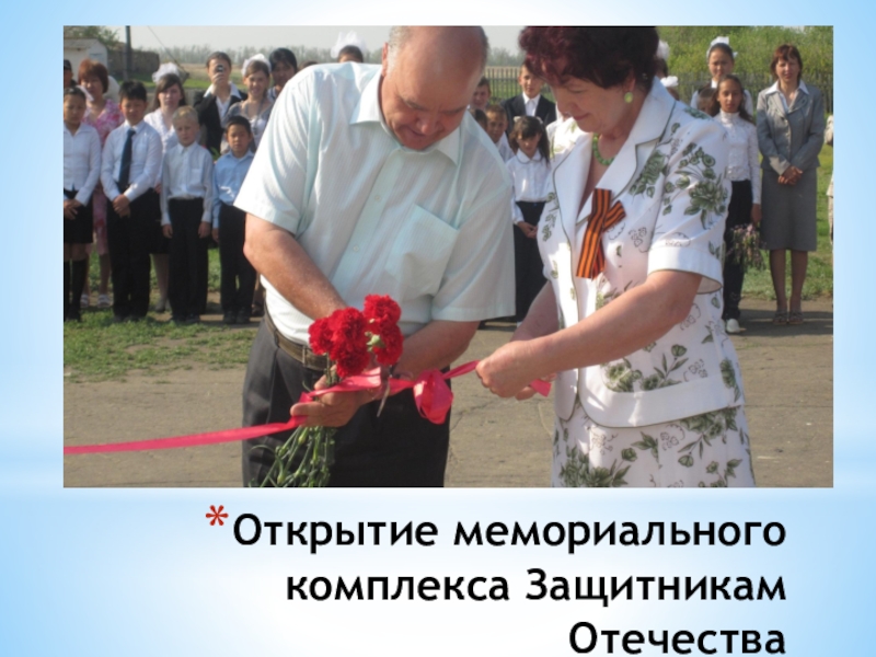 Слайд 39Открытие мемориального комплекса Защитникам Отечества