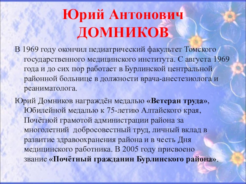 Слайд 10Юрий Антонович ДОМНИКОВ