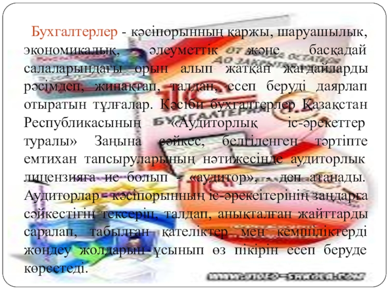 Слайд 3 Бухгалтерлер - кәсіпорынның қаржы, шаруашылык, экономикалық, әлеуметтік және басқадай салаларындағы