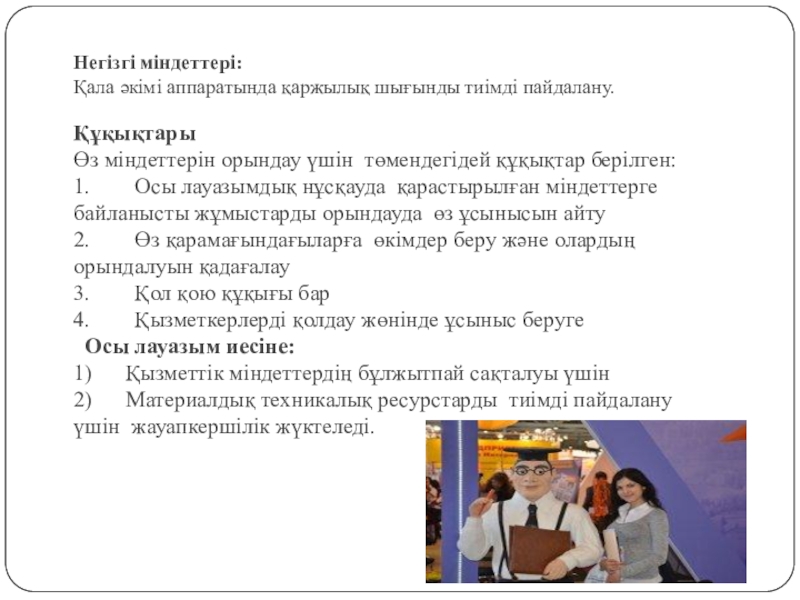 Қала әкімі аппаратында қаржылық шығынды тиімді пайдалану.