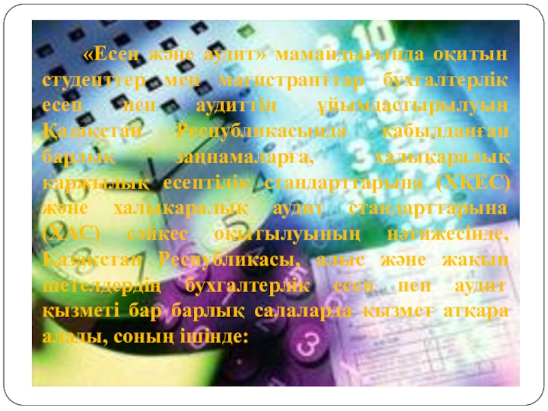 Слайд 5 «Есеп және аудит» мамандығында оқитын студенттер мен магистранттар