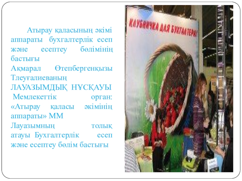 Слайд 7 Атырау қаласының әкімі аппараты бухгалтерлік есеп және