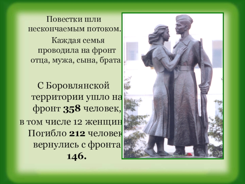 С Боровлянской территории ушло на фронт 358 человек,