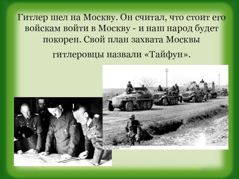 Слайд 7Гитлер шел на Москву. Он считал, что стоит его войскам войти