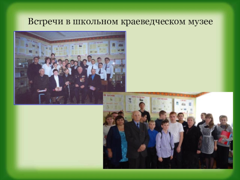Слайд 20Встречи в школьном краеведческом музее