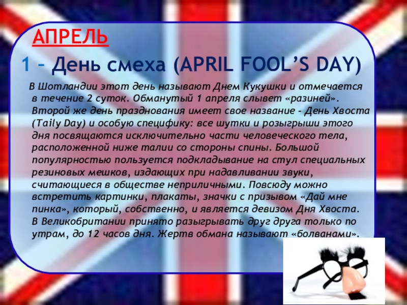 В Великобритании принято разыгрывать друг друга только по утрам, до 12 часов дня. Жертв обмана называют «болванами».