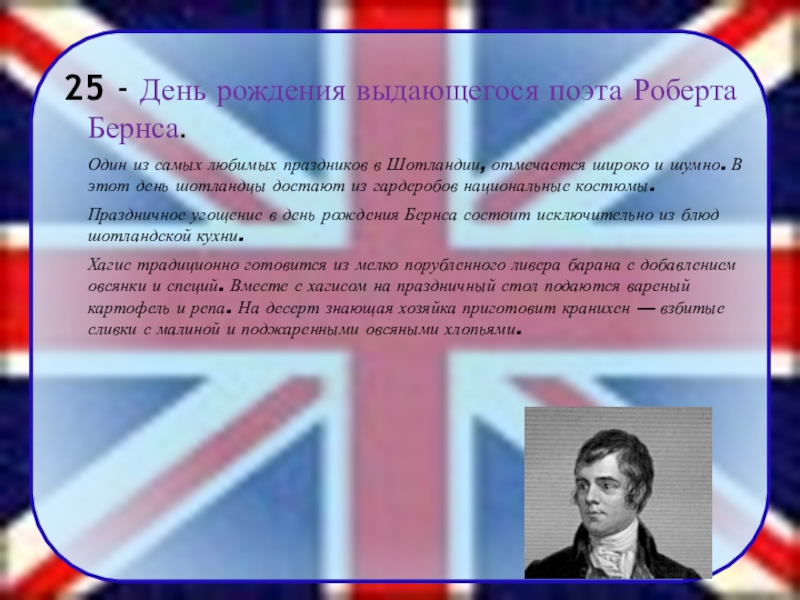 25 - День рождения выдающегося поэта Роберта Бернса.