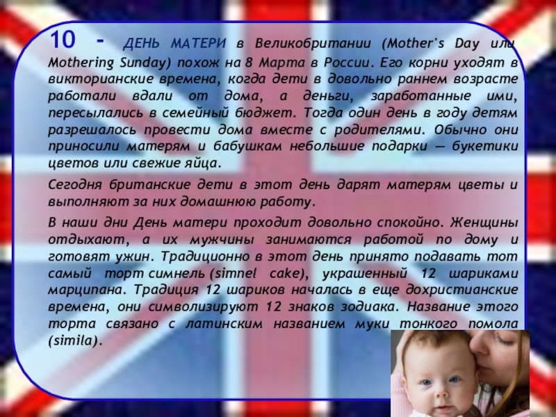 10 - ДЕНЬ МАТЕРИ в Великобритании (Mother's Day или Mothering Sunday)