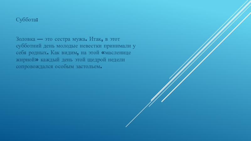 Золовка — это сестра мужа. Итак, в этот субботний день молодые