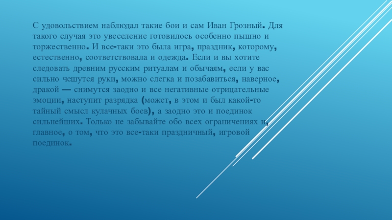 Слайд 19С удовольствием наблюдал такие бои и сам Иван Грозный. Для такого