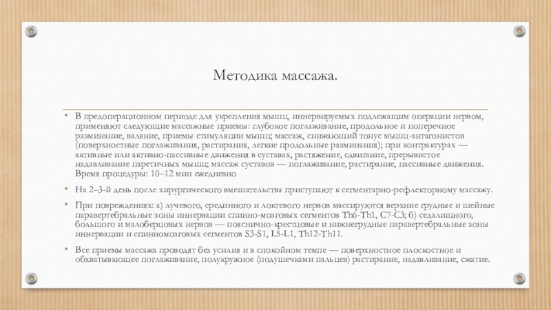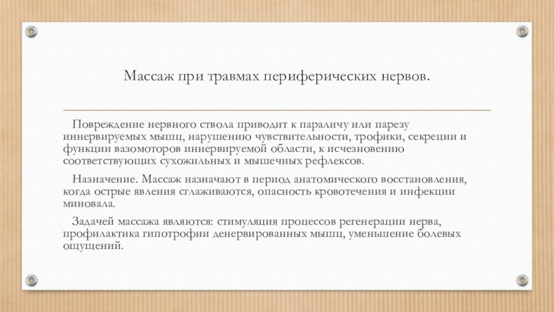 Слайд 9Массаж при травмах периферических нервов.