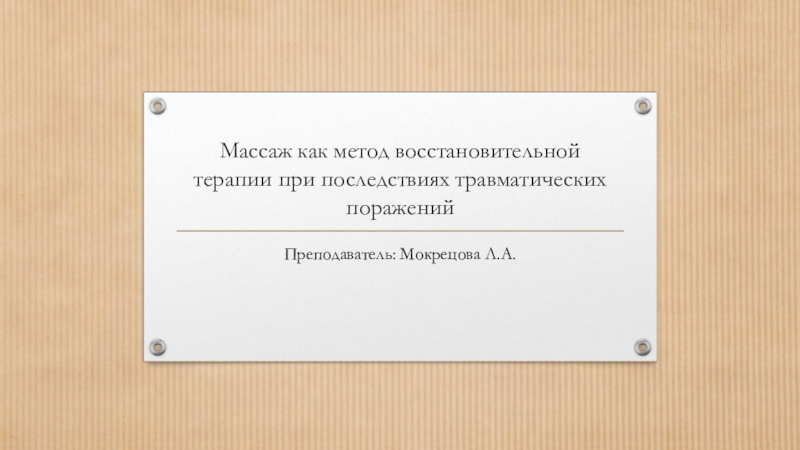Слайд 1Массаж как метод восстановительной терапии при последствиях травматических поражений
