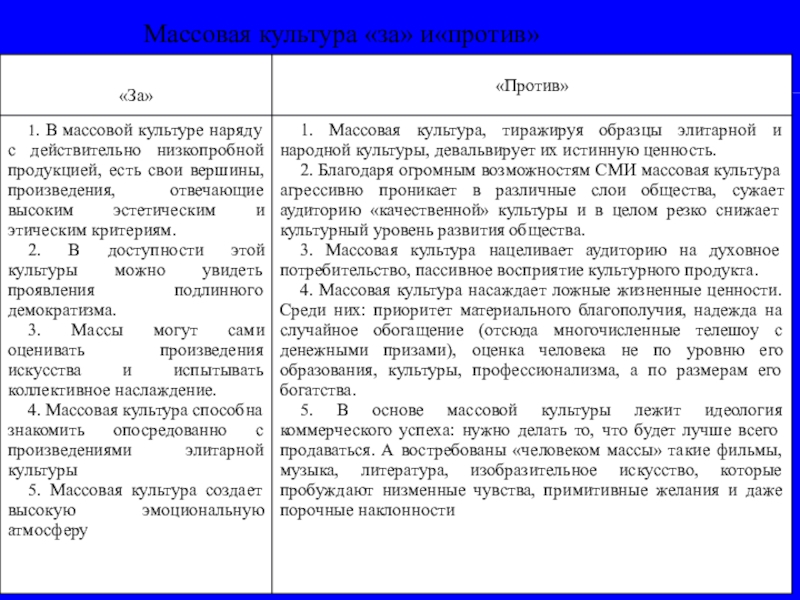 Массовая культура «за» и«против»