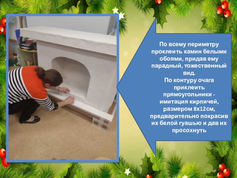 4.Зафиксировать крышку-столешницу камина на горячий пистолет, сверху придавив тяжелым грузом для максимальной фиксации.